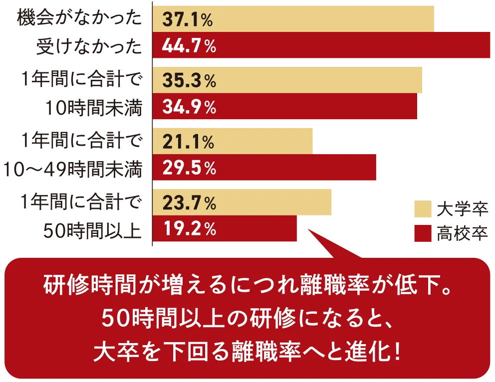 研修時間別3年以内離職率